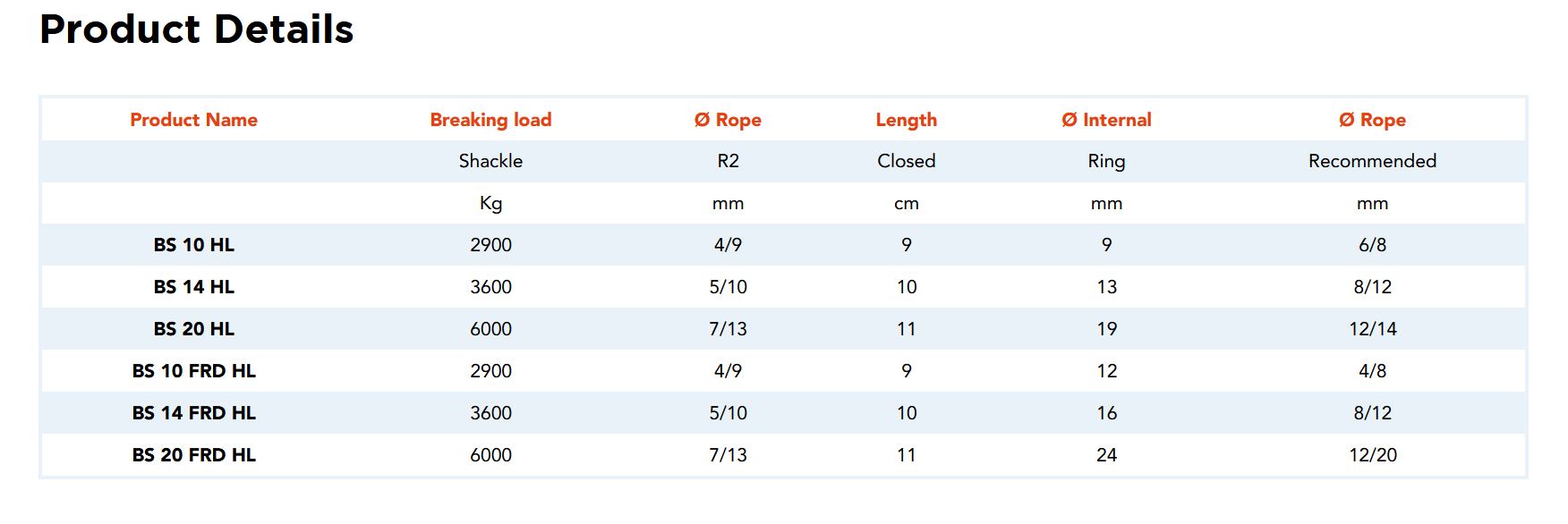 - BS FRD 10 HL / Breaking Load 2900 KG