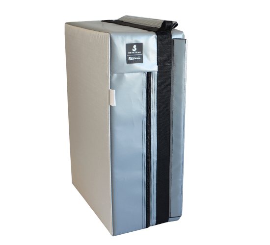 1 cover composed of 4 sides + 1 side in tarpaulin + 1 side in reversed tarpaulin to