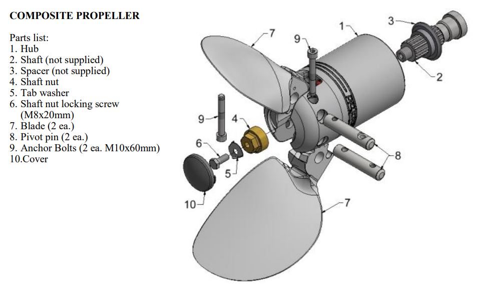 Fits Saildrive-type 2-Blade Flexofold Composite Props.