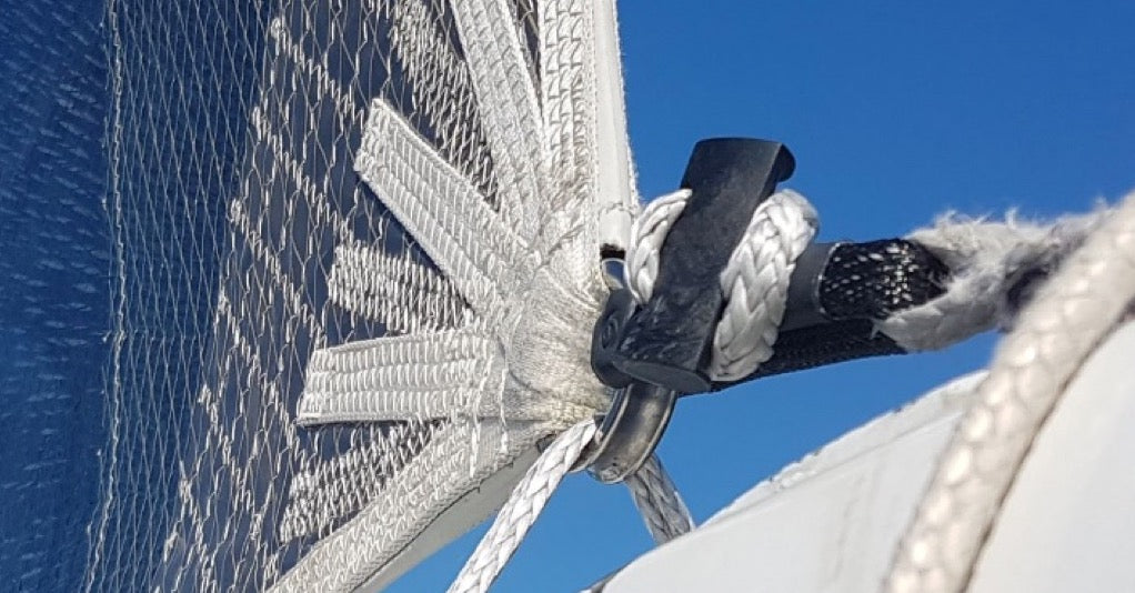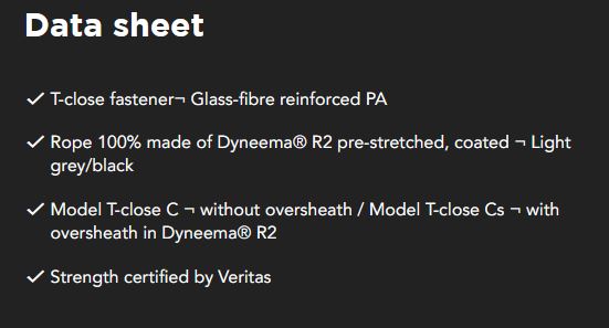 Cs, captive textile shackle, specially designed for halyards & sheets with an eye ending. Shackle that is captive using our Block® system.