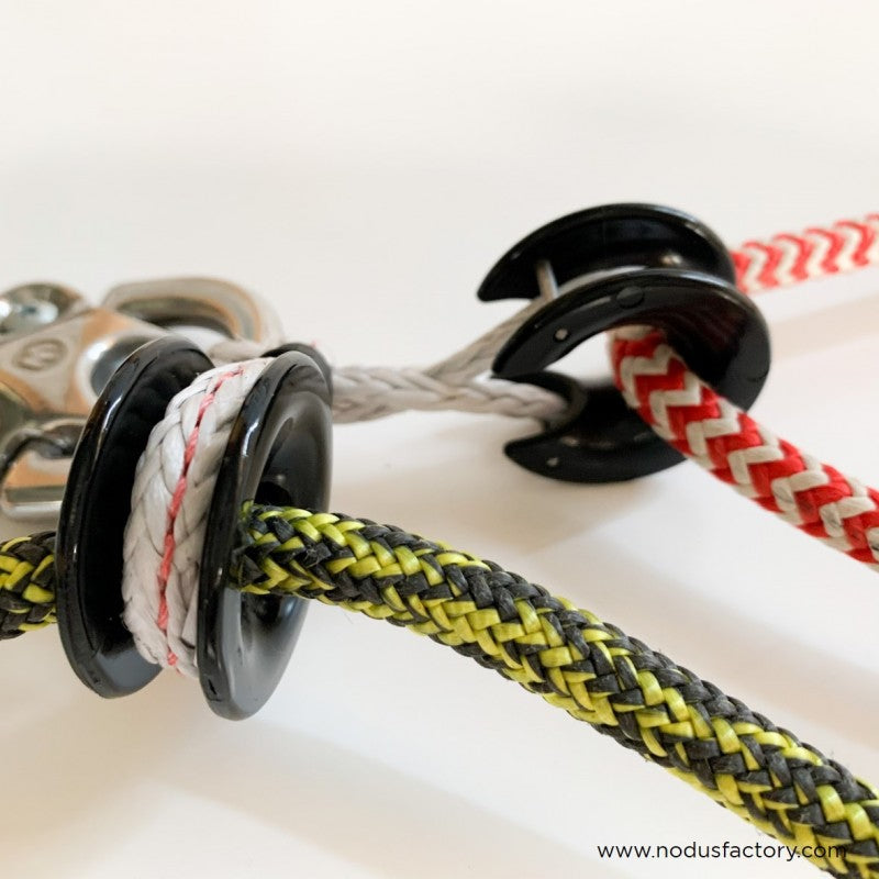- This textile loop is easily fixed on the deck plates and toe rail and, using the Nodus friction ring can haul all adjusting ropes.