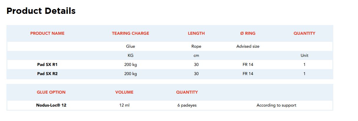- Easy, quick and very simple to install, your Nodus-Padeye SX will support up to 200 kg (without screws) once fixed with the Nodus-Loc® Bi-component glue.