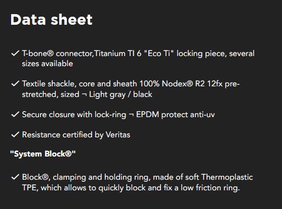 - Ideal as a flexible textile fastener for mainsail foot, pulleys, low-friction rings, running backstay links, baby stay, etc.