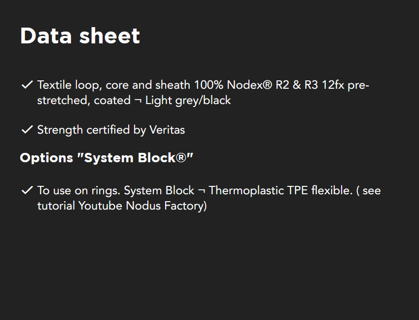 The High Load Loop® made of Nodex® R2 & R3 is a textile ring for heavy loads, ideal as a soft shackle. The specific feature of this product is that it is both a core and a sheath.