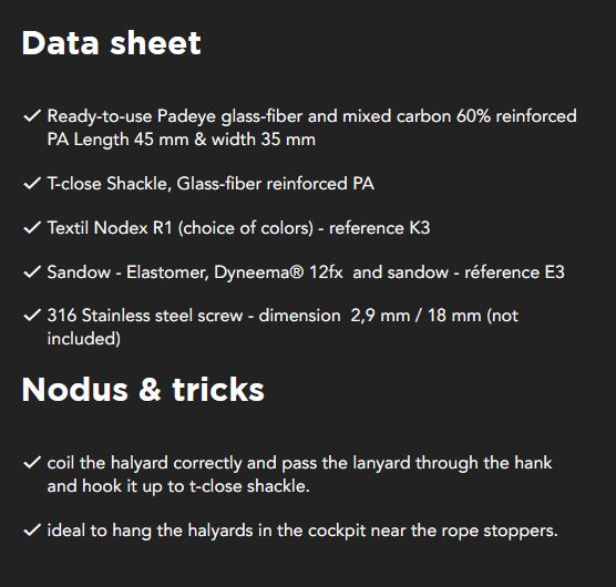 Textil cleat to be screwed or glued, Nodus Pad-line® , is the perfect solution for putting away your halyards and sheets aboard.