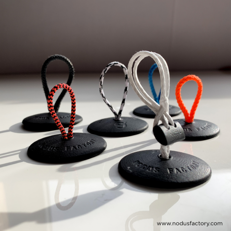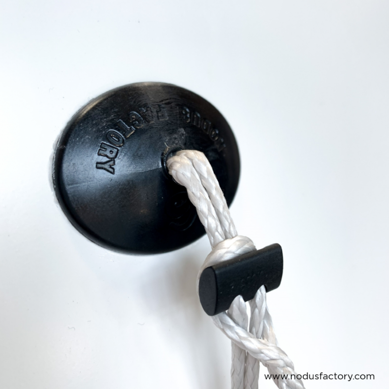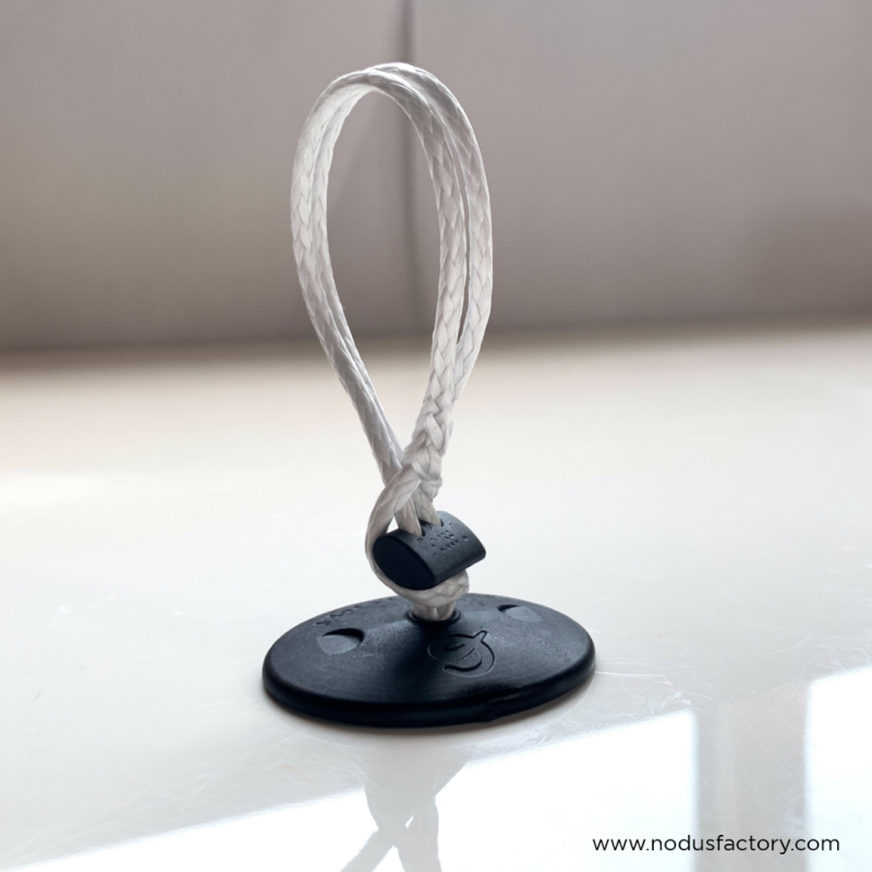 - Once fixed on the wall, the textile cleat Nodus Pad-line catches your ropes coiled thanks to a lanyard.